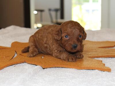 Here is Cinnamon a Apricot (Female) Mini Poodle, Born August 9, 2025 She should be ready to go home ...