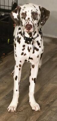 Meet 1 year old Laylashe is a full blooded LIVER SPOTTED DALMATIANLiver spotted means Dark Brown spo...