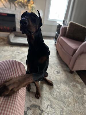 2 year old European Doberman. Great with kids and other dogs. House and crate trained. Loves car rid...
