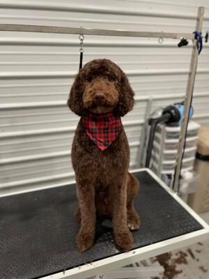 FINLEY KNOX CKC registered medium F1bb chocolate GoldenDoodle stud. Weve had him since he was 8 wee...