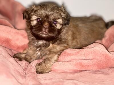 CKC registered Shih Tzu puppies. Mom weighs 11lbs (liver Shih Tzu) dad weighs 8lbs (brindle Shih Tzu...