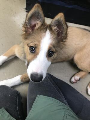 Beautiful bi blu male with sheltie attitude for sure. All shots and dewormed registered almost 6 mo...