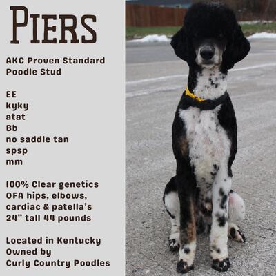 Akc registered Standard Poodle stud Black phantom Tuxedo 47 pounds Embark tested clear EE kyky a...