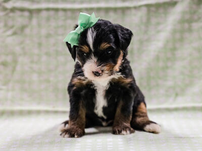 Here is Lindsay a Tri-Colored (Female) F1 Bernedoodle, Born March 19, 2025 She should be ready to go...