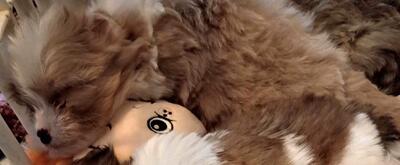 Here is Brittany a Blue Merle (Female) Mini Cavapoo, Born December 26, 2024 She should be ready to g...