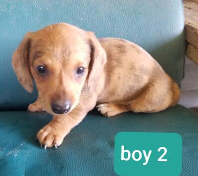 2 mini dapple dachshund boys both smooth coat ready to go. Dad is a blue dapple smooth coat mom is r...