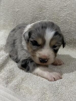 I have 3 blue merle boy and a red tri girl looking for their new home. Ready to go! Champion show ...