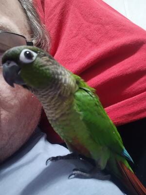 Very sweet hand fed baby green cheek conure available. Loves attention and being out on your shoulde...