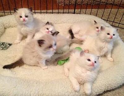 Four beautiful ragdoll kittens for sale. Mum is blue solid mitted and dad is seal point both seen in...