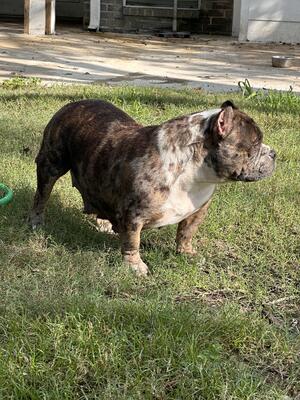 3 bullies 2 females 1 male Tri/merle brindle female $2500 pet home $3500 with 2.5yo 1 litter Blue/...