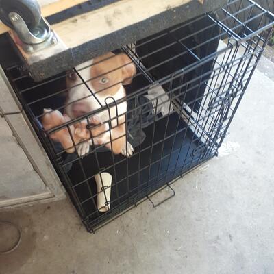 We have a 3 month old female pitbull needs a good home comes with her kennel and utd on her shots ca...