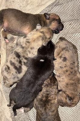 DOB: 9/23/25 Staffy x Amer bully Healthy, happy, active Brindle brown with white markings and whi...