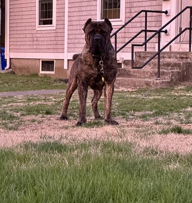 Knox is a chestnut brindle , big head , lean athletic , dual registered akc / iccf Cane Corso . His ...