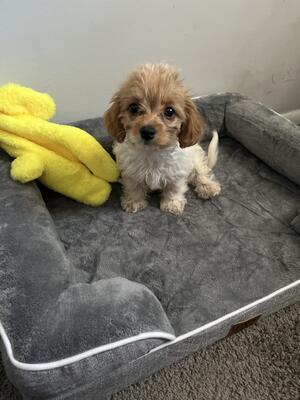 10 week old mini cavapoo puppy She was 3.2lbs last vet visit 8/28/25 First round of shots with rec...