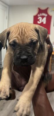 She Tink 4 month old Cane Corso Pup already know stay ,sit ,come,lay down with Paperwork 1,000 Text...