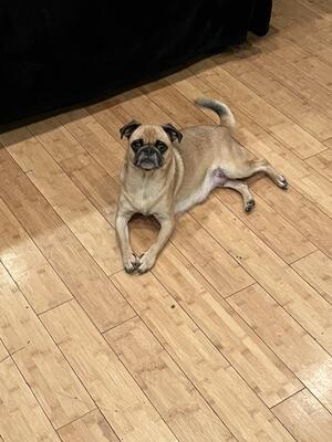 Female puggle to a good home only she is super sweet house trained not fixed loves attention 200 obo...