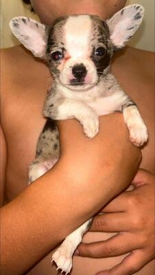 Chainsaw is a blue trindle pied boy with green eyes! This guy has a refined bulldog look with a mass...