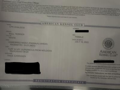 Bull terrier female available AKC registered 1k firm Located pick up only she is on her 3rd da...