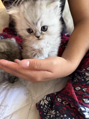 Super playful energetic kitten sweet and loving looking for his forever home Mom is a doll face silv...