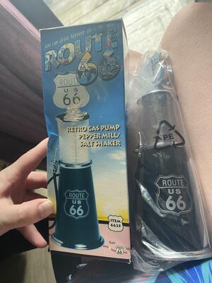 Retro Route 66 Gas Pump Pepper Mill/salt shaker. Great condition with box and packing...
