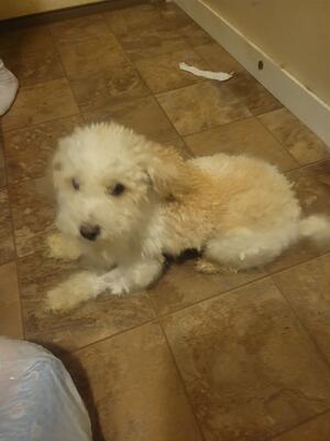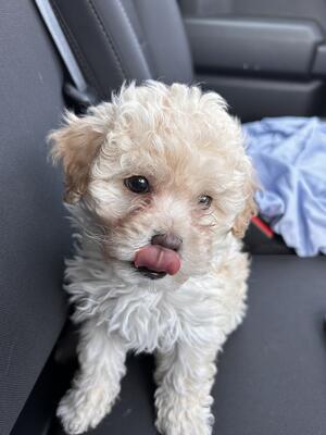 Female, cream colored Malti-poo puppy. Last one left in the litter. Dewormed and first shots. She is...
