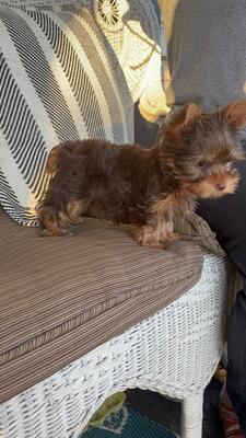 Yorkie chocolate boy is looking for his forever home! 10 weeks old ,first shots and dewormed, very ...