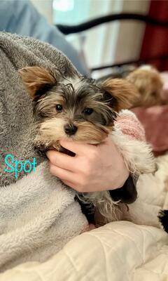 Yorkshire Terrier puppy born 9/22/2025. Their mom is a 14lb Yorkshire Terrier. Their dad is a 9lb Yo...