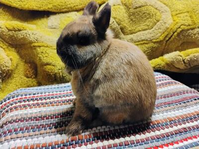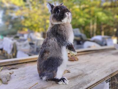 Young senior Netherland Dwarf himi buck. 2.3#. He was insisting on his T-Rex impressions for photos ...