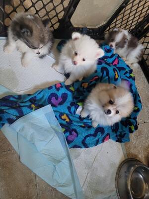 Male and female pomeranian puppies 8 wks 1st shot dewormed 3× extra fluffy ready to go to thier fur...