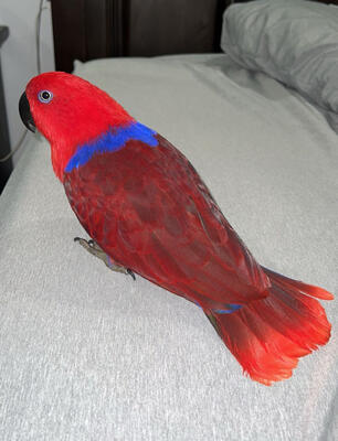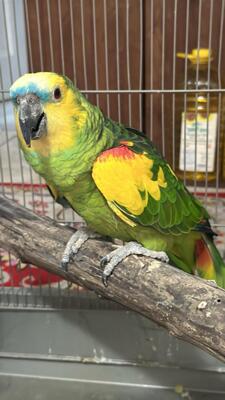Friendly parrot, a little quiet when she’s not familiar around you but she opens up and talks more...