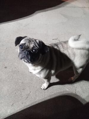 Female pug needs a home. 5 years old. Sweet as can be. No papers....