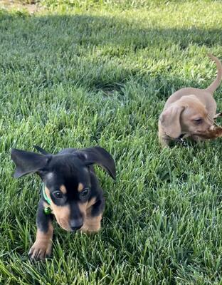 🐾 Miniature Dachshund Puppies – Born August 12 🐾 2 available One shaded red, one, black...