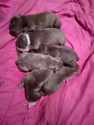 A litter of 3 boys 1 females American bully’s they are 4 weeks puppies will have their ear cropped...
