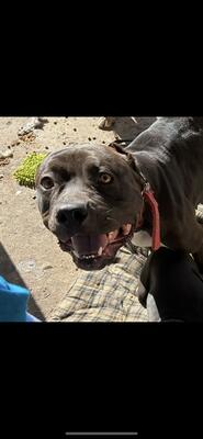 Female blue pitbull looking for her forever home super pretty. She has green eyes. She’s about 12 ...