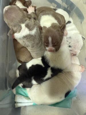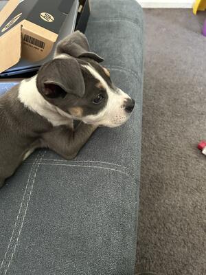 Female black &white 4months old needs to be the only female pics of mom and dad.mom is amstaff dad a...