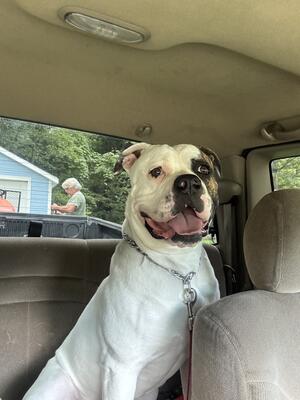 5 year old Bully not neutered. Good with other animals and children. Crate trained. Text 5868437518....