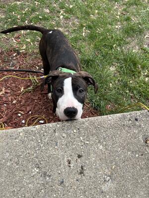 I have a 7 black and white lab and pit bull mix. They are 11 weeks old. Currently had first set of s...