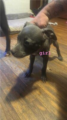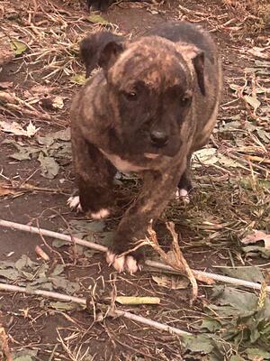 I have 3 puppies one female and 2 males. The white and brindle is a female They are 8 weeks old ...