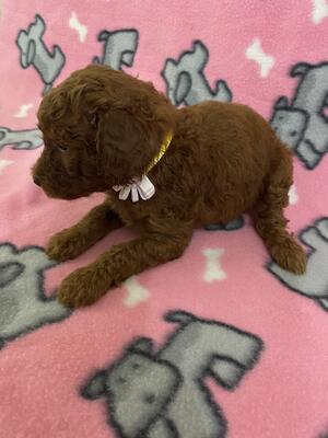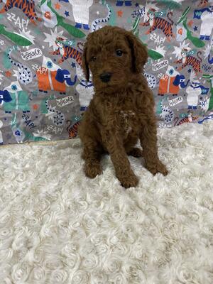 Poodle puppy miniature is ready for his forever home. He is Red with a small white mark in chest. Ta...