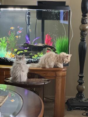 Long haired Tortoiseshell is a female 8 years old very loving and laid back White boy is about 3-4...