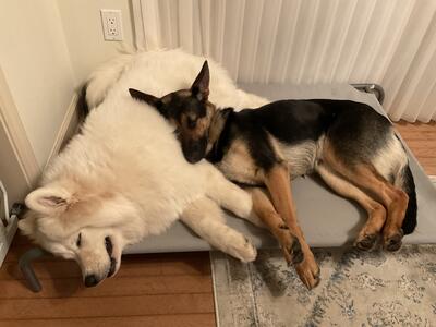 4 year old German Shepherd and Samoyed looking for new home