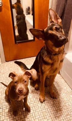 Meet luna, she''s super sweet 8month old pittie who loves to lay on blankets and sleep with kids or...