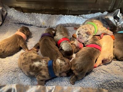 I have eight beautiful English bulldogs two females one Merle female and one lilac tri female. I al...