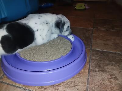 3 yr old male named Louie 6 #s neutered very active loves to run and jumps and walk. he does have an...