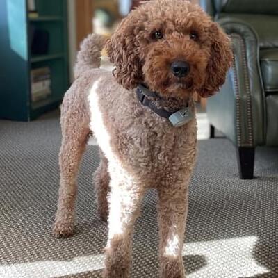 Petey- is a proven AKC moyen dark red Poodle weighing 33s and 20" tall. (Moyen is the size between m...
