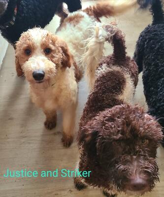 Happy golden doodle puppies