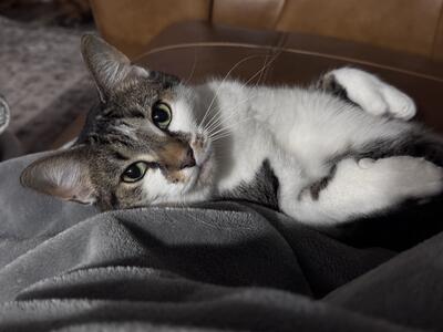Hello This is Moo moo (black and white cat) She is very social and you can literally do anything ...