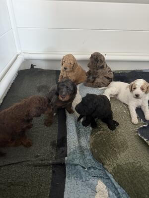 Mini golden doodles both parents are 20lbs. Lots of color Parents are fully health tested. Babies ...