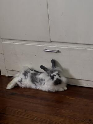 Approximately 8 months old. No rehoming fee but just needed a home for him if possible as a solo rab...