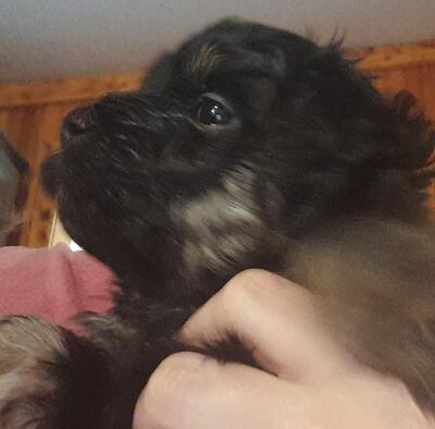 Beautiful little black male maltipoo with unique brown and white markings will be ready for his new ...
